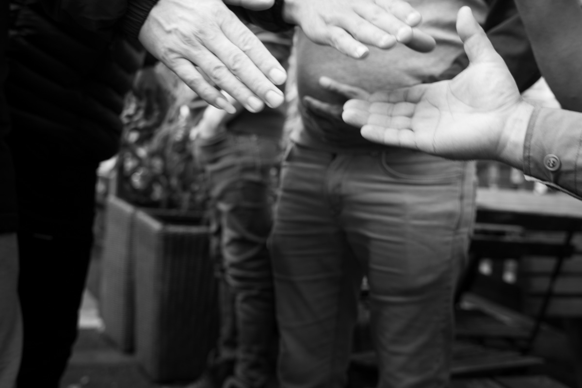 Nous sommes un collectif d’une dizaine de personnes et chaque mois nous partons photographier tous ensemble à Liège avec la question de l’hospitalité en tête, certain.es avec un appareil photo, d’autres avec un téléphone, peu importe le niveau de chacun.e.